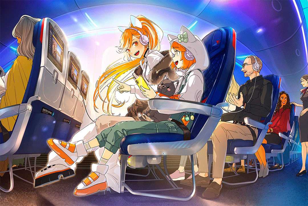 Después de disfrutar las series disponibles en los respaldos de los asientos, los miembros de SkyMiles pueden profundizar y explorar el catálogo completo de Crunchyroll con 50,000 episodios de series y películas, 25,000 horas de contenido y más de 2,000 títulos únicos, iniciando sesión en Delta Sync Wi-Fi desde sus dispositivos personales. Desde allí, los miembros pueden acceder a una prueba gratuita exclusiva de 24 horas de la colección de anime más grande del mundo, para usar durante el vuelo o después del aterrizaje (se aplican términos y exclusiones).