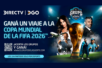 DirecTV lanza “El grupo de la suerte”, un concurso para los fanáticos del fútbol que premiará al ganador y un acompañante con pasajes, alojamiento y entradas para disfrutar de la próxima Copa Mundial FIFA 2026 que se disputará en los Estados Unidos, México y Canadá.