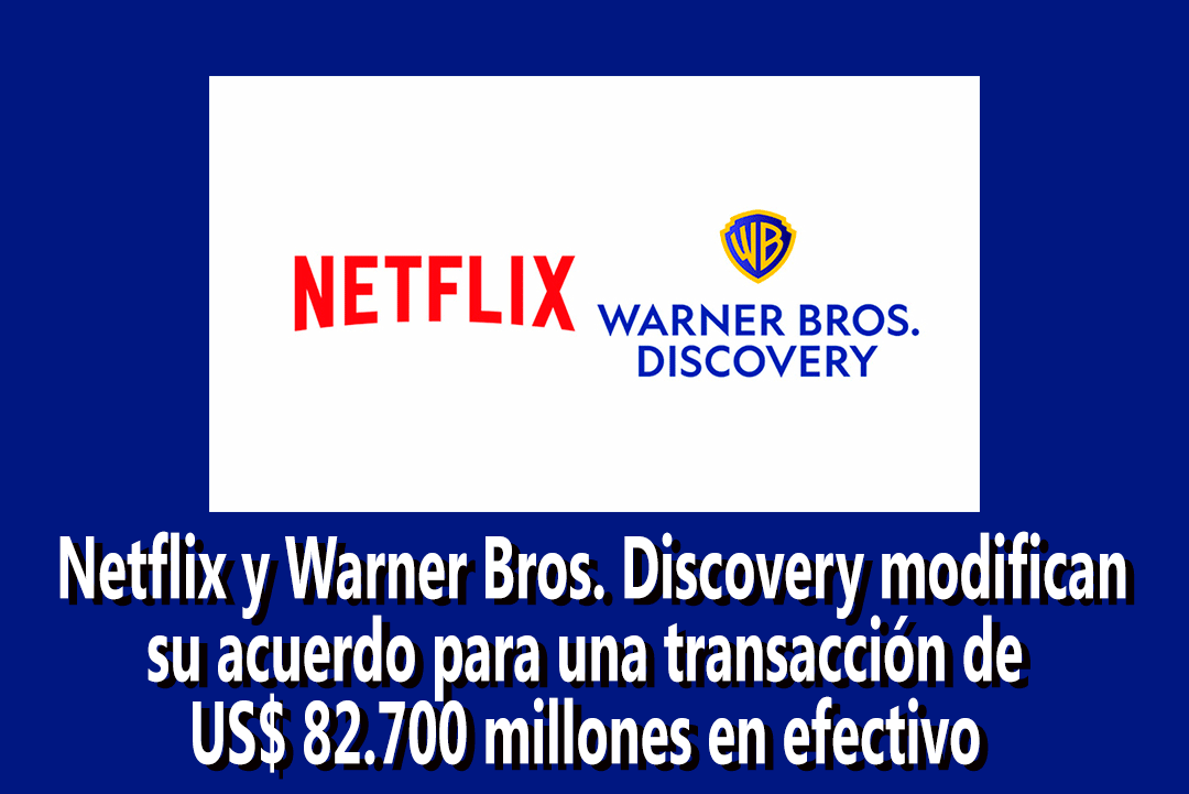 Netflix, Inc. y Warner Bros. Discovery, Inc. anunciaron la modificación de su acuerdo definitivo para la adquisición pendiente de Warner Bros. por parte de Netflix, a una transacción íntegramente en efectivo.