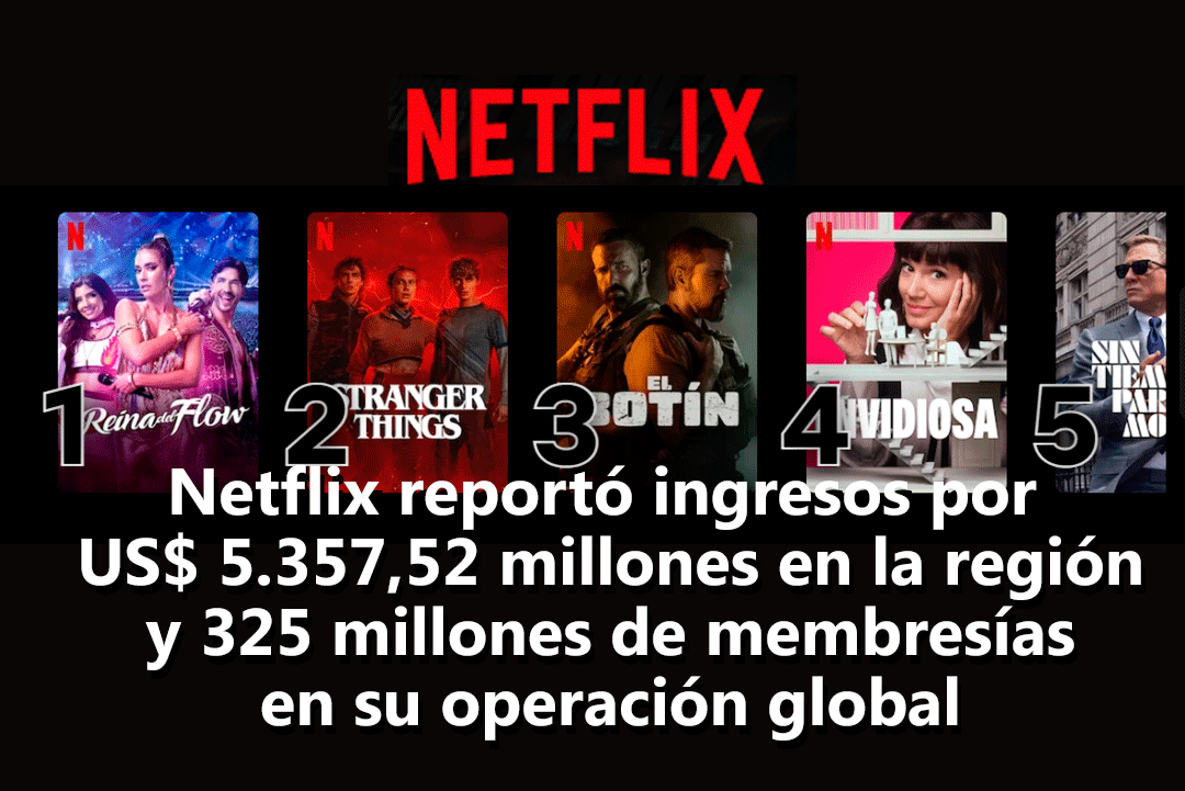 Netflix reportó que durante el 2025 sus ingresos en Latinoamérica llegaron a US$ 5.357,521 millones, lo que refleja un crecimiento interanual de 11%.