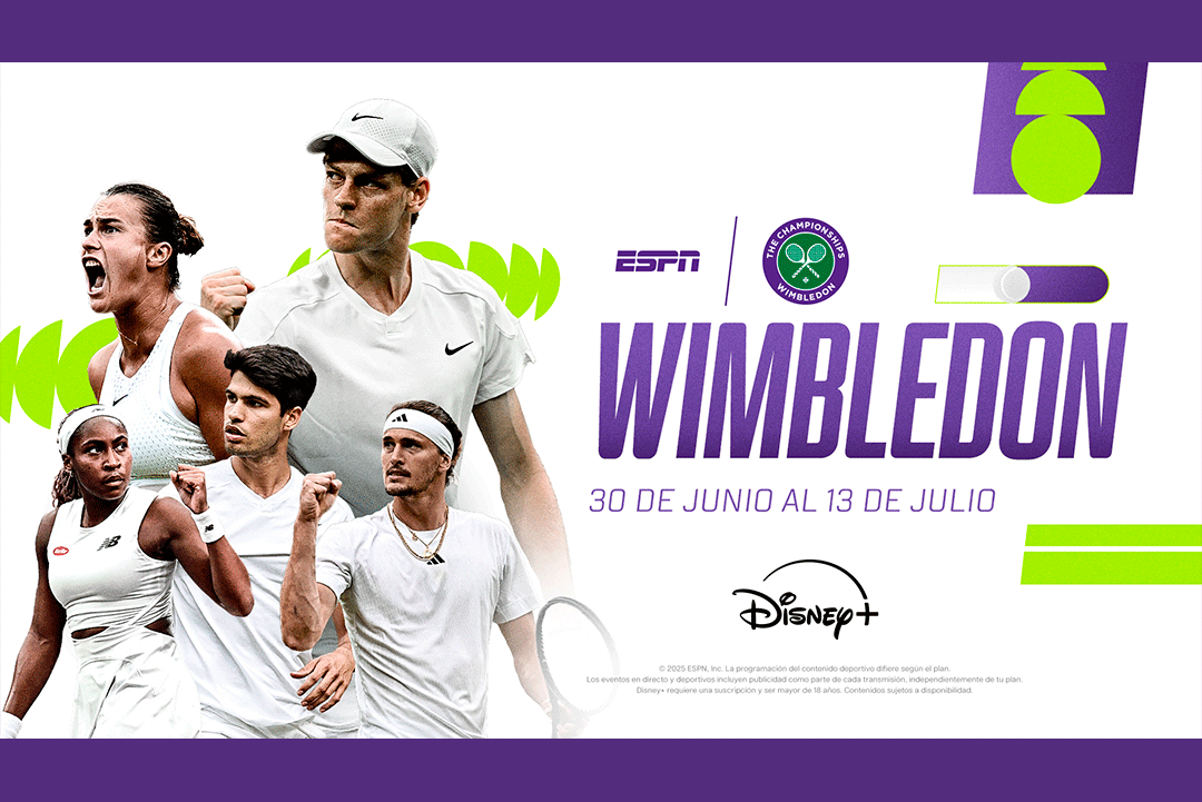 Entre el lunes 30 de junio y el domingo 13 de julio, la cita obligada de los fanáticos del tenis estará en ESPN y Disney+ para disfrutar desde Londres de la 138ª edición del prestigioso torneo de Wimbledon, con una súper cobertura simultánea desde las 18 canchas del campeonato.